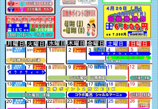 極楽湯宮崎店です。 2月のイベントカレンダーのご案内!! 2月は、 ①定番人気☆サウナWEEK!! ※今回は、2月8日(日)まで開催!! 水風呂の温度を通常より冷たい、16℃設定!男女サウナ室にヴィヒタ設置しています!...