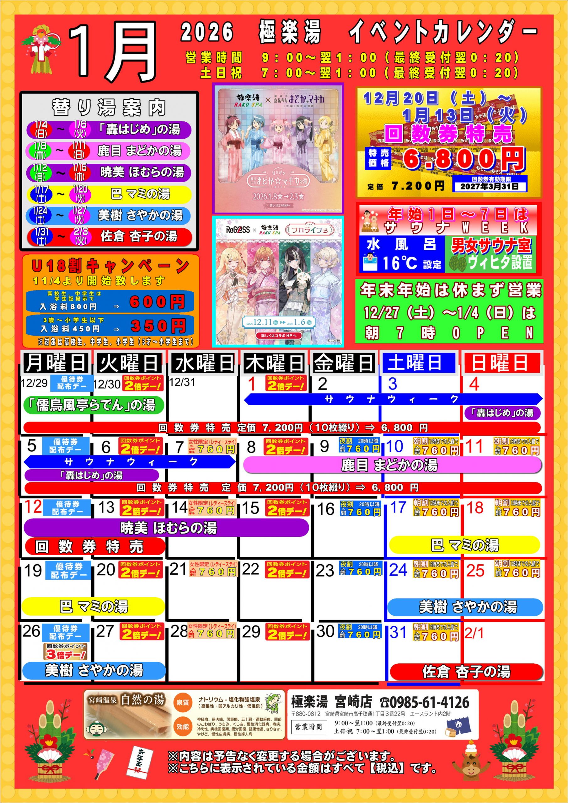 極楽湯宮崎店は、年末年始も休まず営業!!